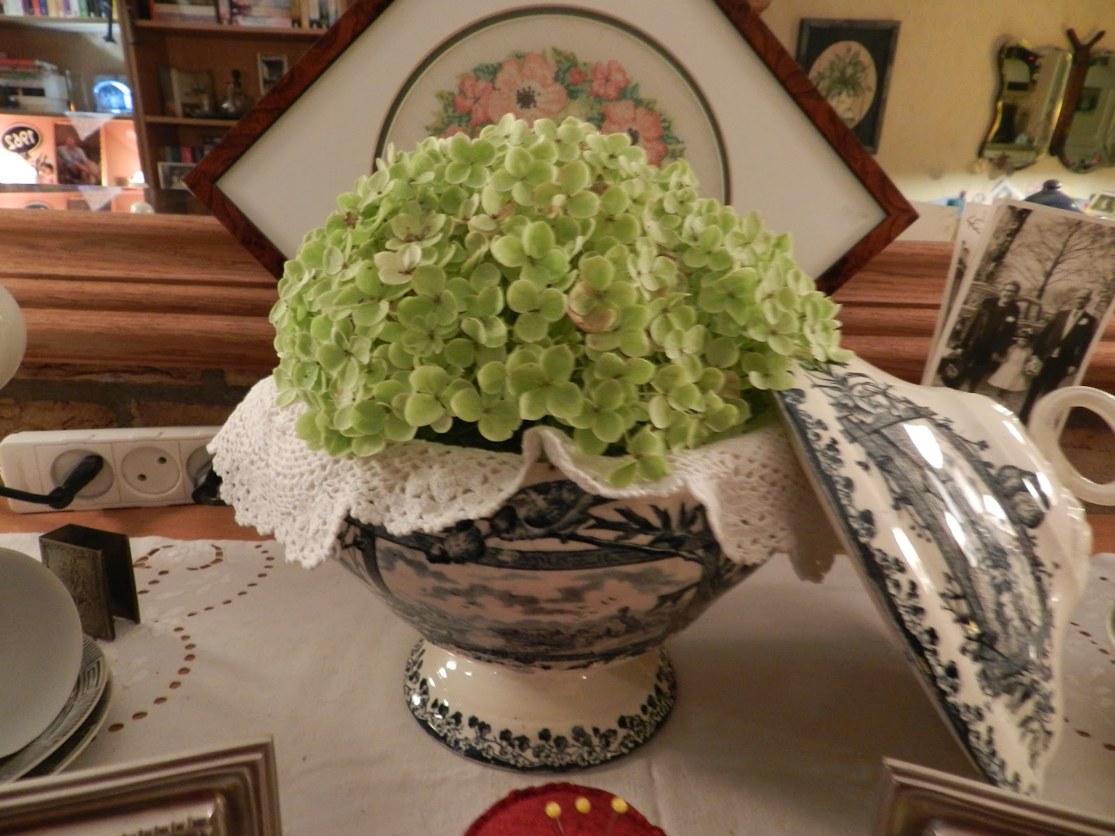 Ja mijn nieuwe aanwinst kreeg ook een plaatsje in huis. Vind ik altijd weer leuk om gezellige hoekjes te maken. Kijk je mee wat ik met de spulletjes uit Lille heb gedaan.................